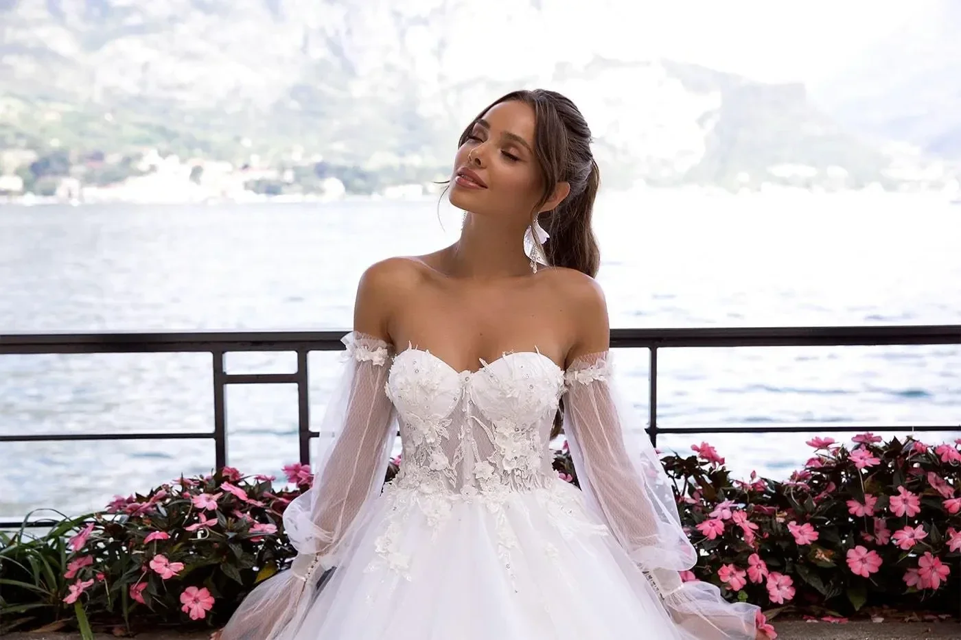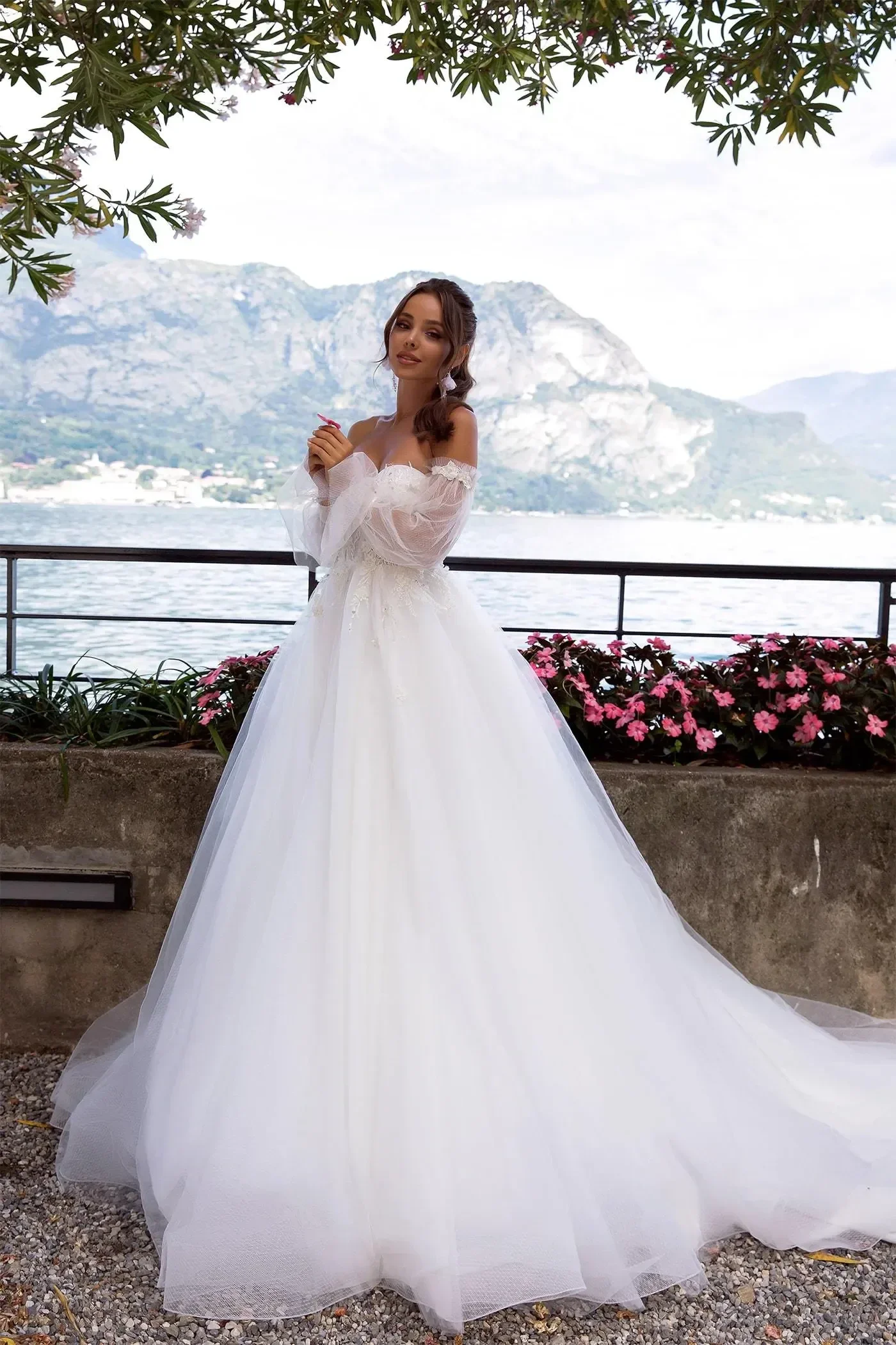 - Rukavi: Prozračni dugi rukavi koji se spuštaju s ramena (off-the-shoulder), a kod nekih varijanti sličnih modela rukavi su odvojivi.